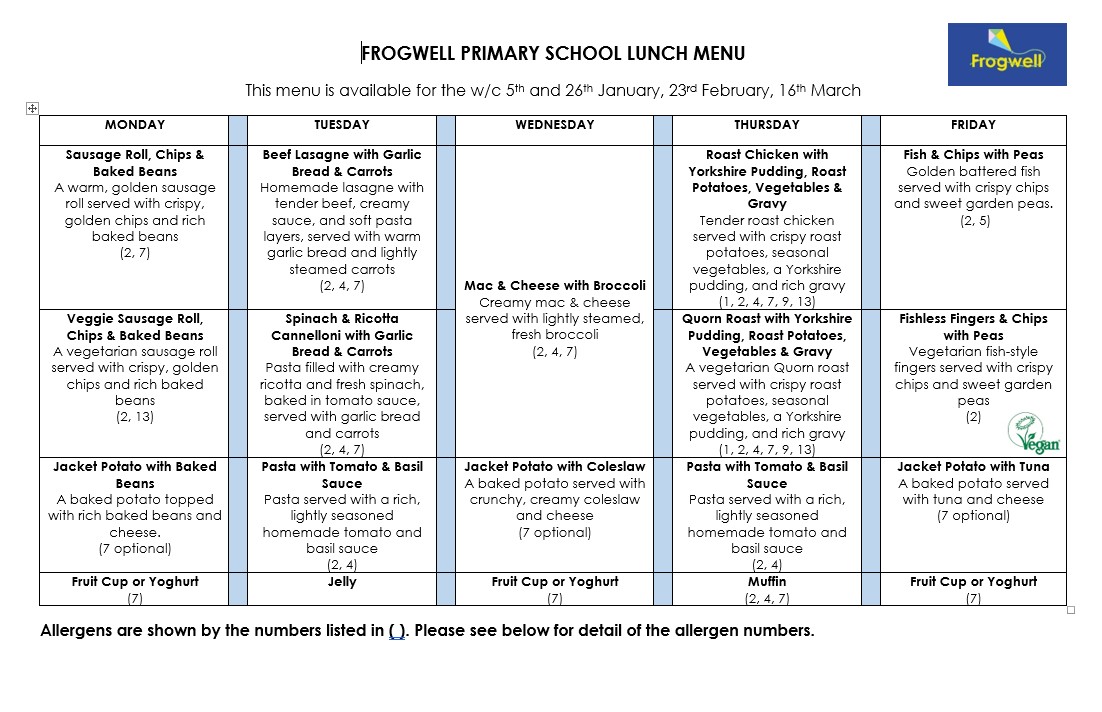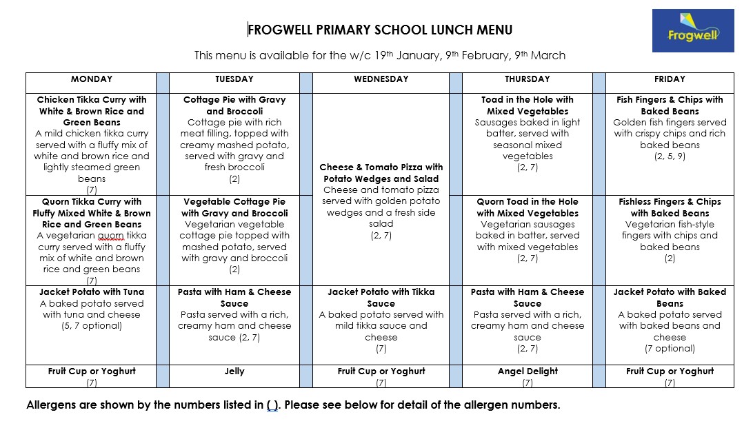 We operate a rotating three-week menu.